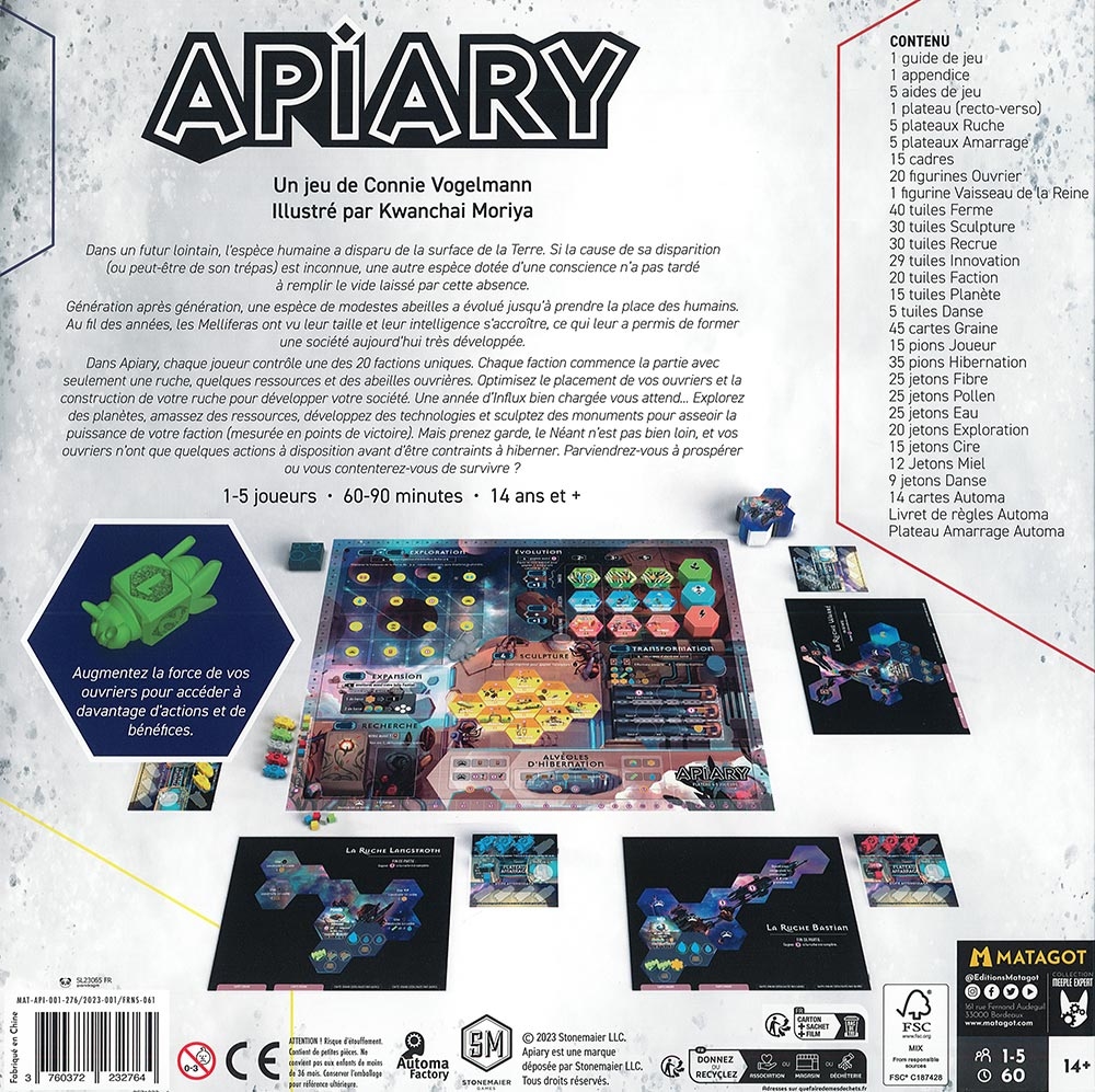 Un défi de placement d’ouvrières et de construction de ruches vous attend : explorer des planètes, collecter des ressources, développer des technologies et créer des sculptures pour démontrer les forces de votre faction (mesurées en points de victoire) au cours d’une année de flux.